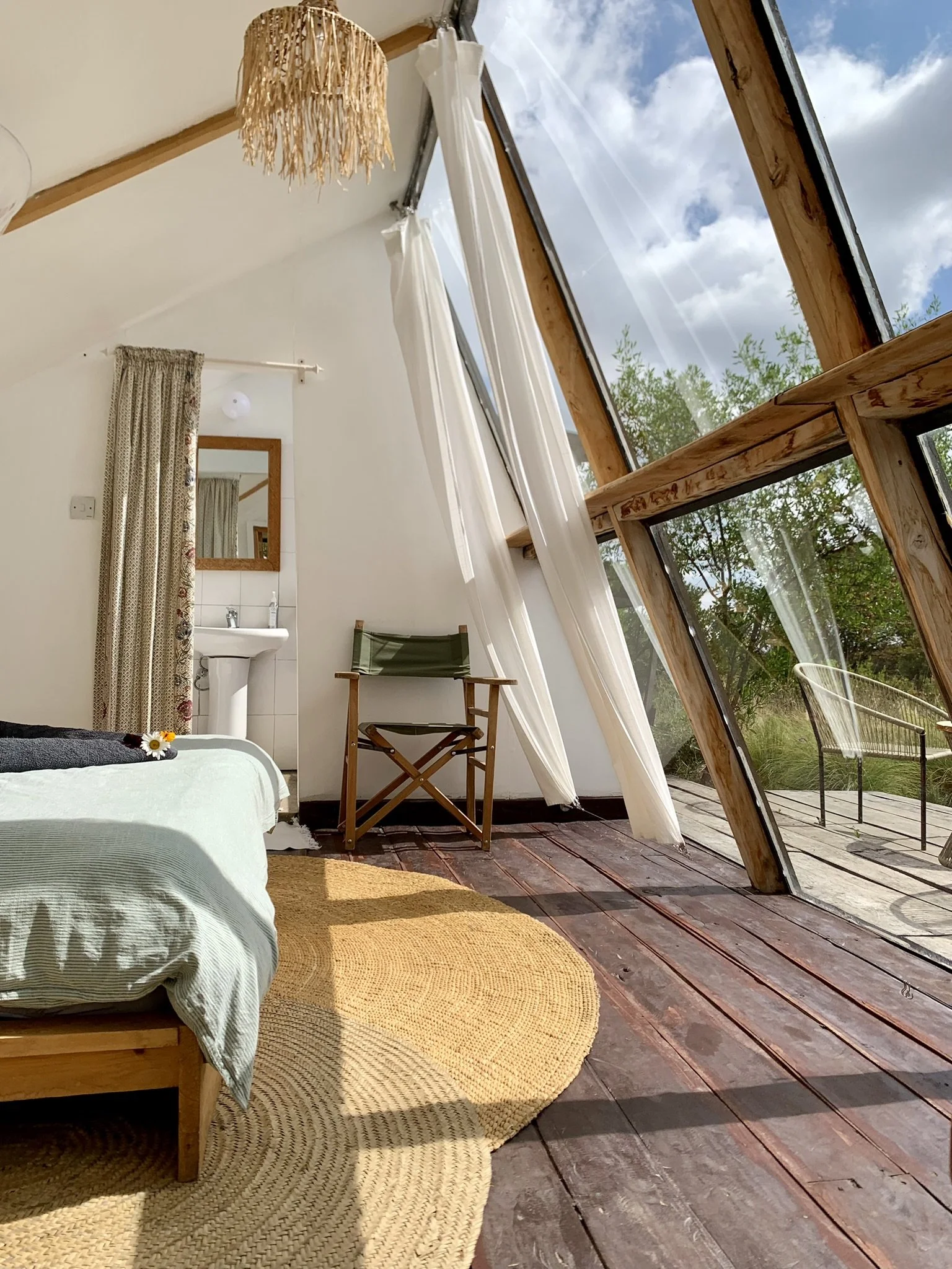 All of our accommodations are set on a large, guarded plot 20 min south from Nanyuki. There’s a lot to discover including our many animals, organic kitchen garden & fruit orchard, hammock treehouse, outdoor gym, wood-fired sauna & cold plunge pool which are shared for all guests.